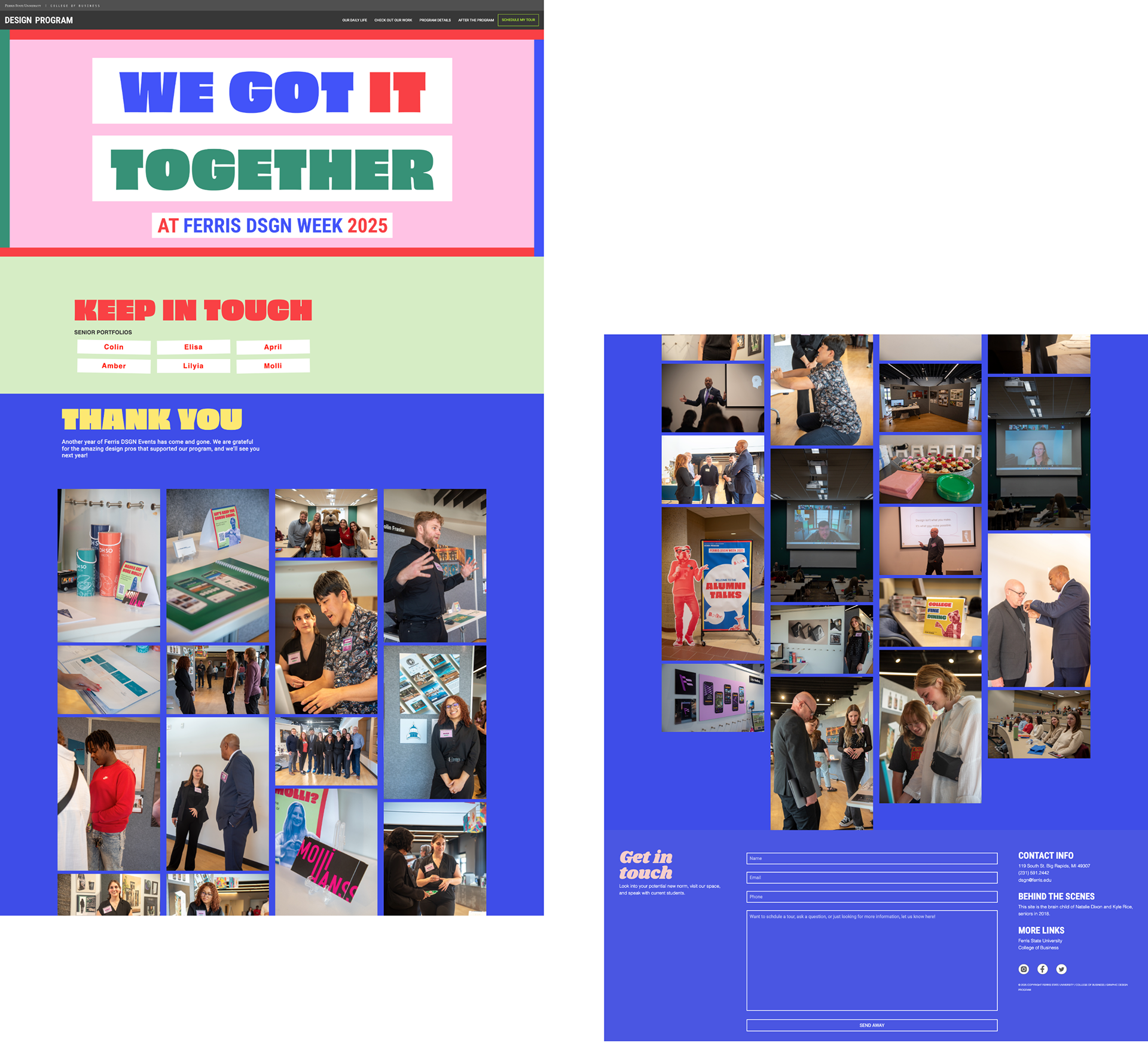 As a continuation of The Critique in the Fall, we evolved the “We Like Awkward” concept and it’s associated visuals to reflect the evolution of the student work between the events, and branded Ferris DSGN Week to signify the Design Program’s class of 2025 is “Getting it Together.”