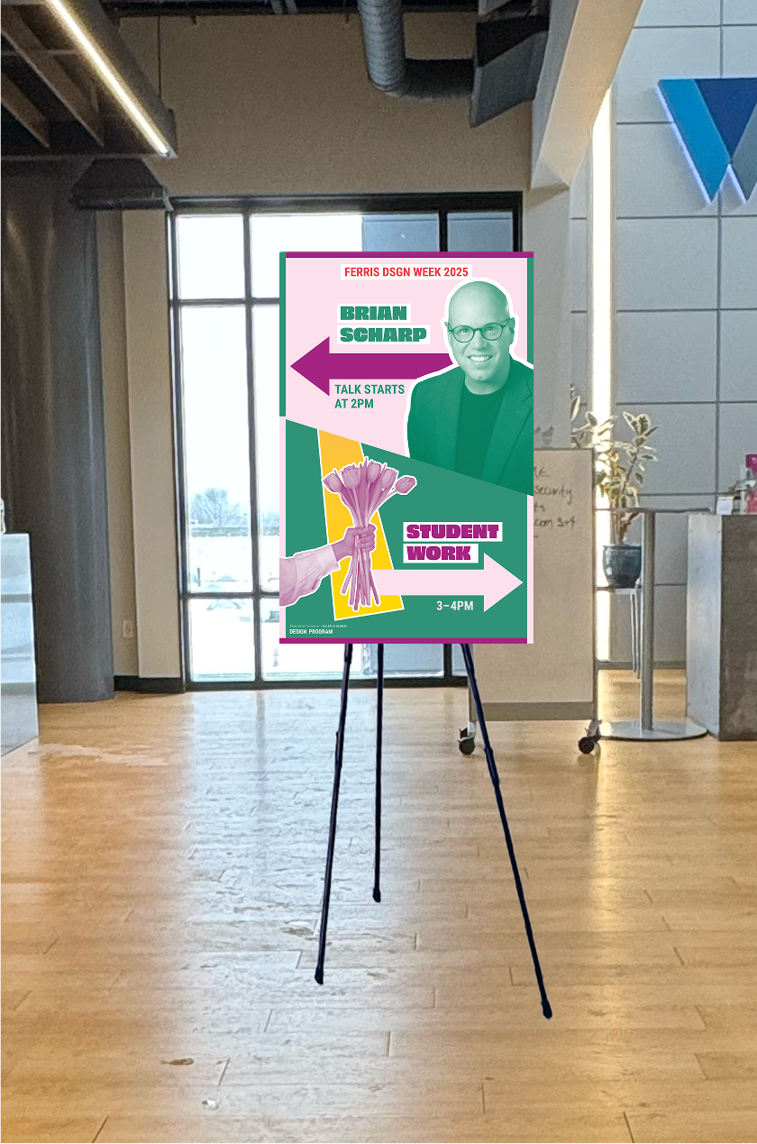 Working on a team of two, I developed a brand identity system to apply to digital and environmental experiences over two different event series on behalf of the Design Program in the College of Business at Ferris State University.