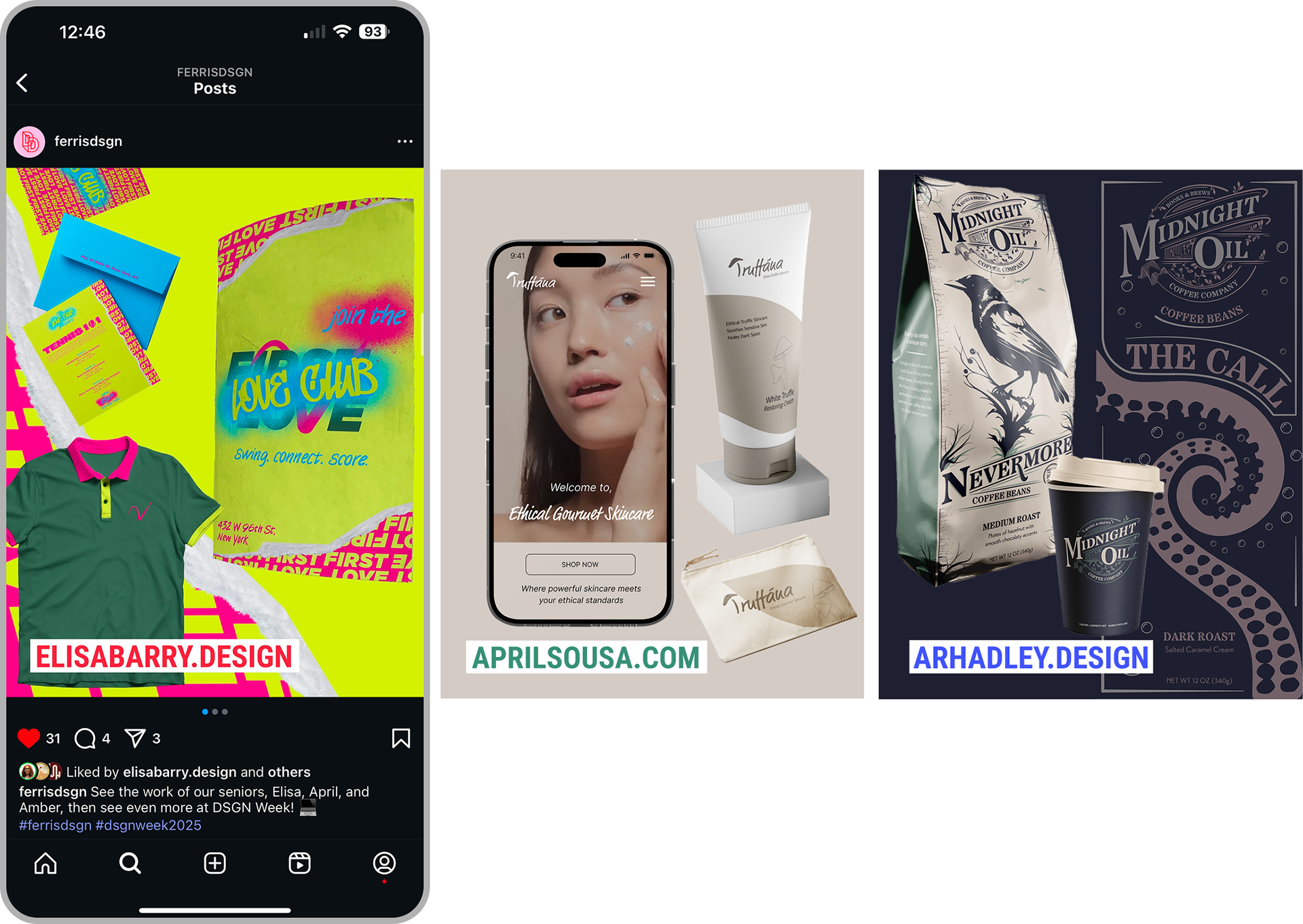 Pairing with Senior Spotlights, we also posted highlights of student work to entice our audience with a preview of work that would be displayed during DSGN Week.
